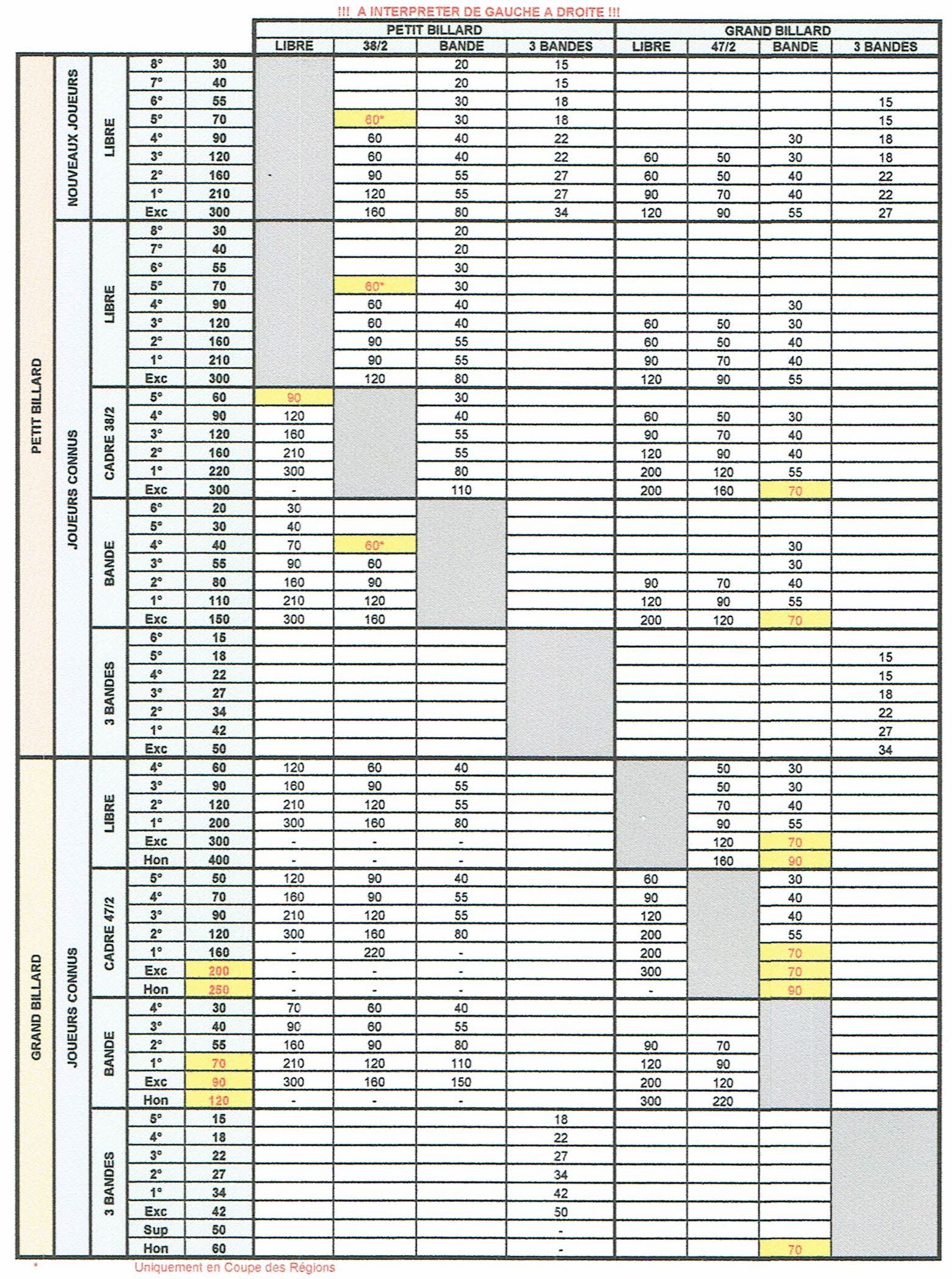 Tableau des équipollences